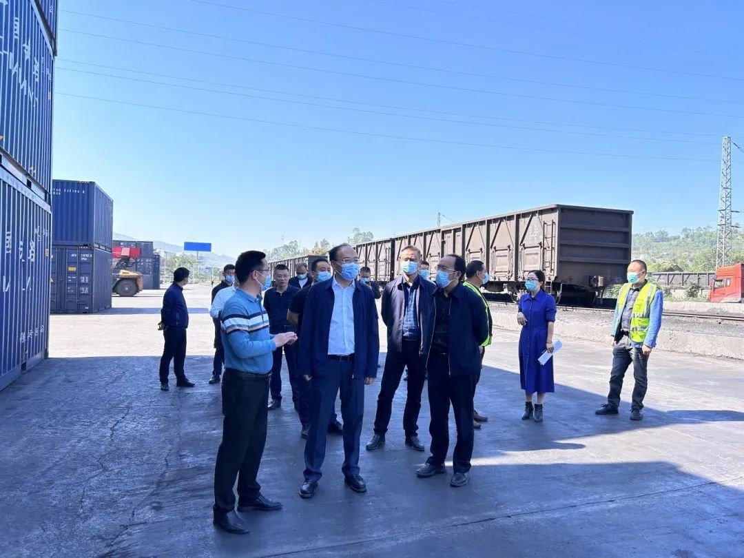 施崇剛一行在公司副總經理唐道剛的陪同下前往南川東站,詳細了解貨場基礎設施條件、貨流徑路、貨運量、運營組織、運輸結構調整等情況。唐道剛對南涪公司鐵路運輸組織、存在的主要問題等情況作了匯報,并表示,南涪公司將全力服務好石灰石、氧化鋁等“公轉鐵”運輸項目,將在鐵路運價政策、站場設施建設、運能運力保障等方面給予積極支持,努力為降低客戶物流成本、深化鐵路運輸改革、促進綠色低碳的經濟高質量發(fā)展作出貢獻。