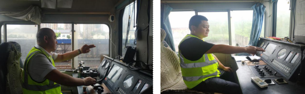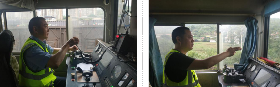 司機(jī)吳登倫正在和信號(hào)樓進(jìn)行要道還道            副司機(jī)王汶棋正在確認(rèn)進(jìn)路和信號(hào)