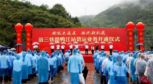 在開通儀式活動現(xiàn)場,武隆區(qū)委副書記、區(qū)長左軍,武隆區(qū)委常委、組織部部長榮鑫,武隆區(qū)副區(qū)長劉印,重慶交通開投集團黨委委員、副總經(jīng)理鄭志明,市鐵路集團監(jiān)事會主席、工會主席陳靜,市鐵路集團二級專務員兼南涪公司黨委書記、董事長馬明澤,國鐵成都局集團重慶車務段副段長虞好,國鐵成都局集團重慶物流中心副總經(jīng)理張凱,武隆區(qū)有關部門和單位負責人,市鐵路集團運營管理部、安全質量部、黨委宣傳部負責人,南涪公司部分客戶企業(yè)代表和南涪公司部分干部職工代表,共同見證了涪三鐵路開通鴨江站貨運業(yè)務的歷史性時刻。開通儀式由市鐵路集團黨委副書記、總經(jīng)理馬虎主持。