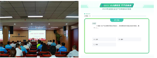 (二)舉辦安全知識競賽。以“人人講安全、個個會應(yīng)急——暢通生命通道”為主題,組織開展安全知識競賽活動,競賽內(nèi)容涵蓋安全生產(chǎn)法律法規(guī)、安全操作規(guī)程、應(yīng)急救援、事故案例分析等多個方面,充分考驗了參賽員工的安全生產(chǎn)知識儲備和應(yīng)用能力。組織干部職工參加“安全生產(chǎn)月”網(wǎng)絡(luò)知識答題活動,共計參與2211人次,進一步提高全體員工的安全意識和安全技能,營造“人人關(guān)心安全,人人重視安全”的良好氛圍。