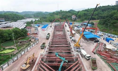 根據(jù)設(shè)計(jì)資料顯示,15號(hào)線二期中梁山隧道正線下穿5組既有線,其中安全風(fēng)險(xiǎn)最高為下穿渭井下行線,拱頂埋深距離既有線鋼軌頂僅8.61米,周邊環(huán)境復(fù)雜,施工風(fēng)險(xiǎn)極高。為保障中梁山隧道施工期間既有線安全運(yùn)營(yíng),根據(jù)鐵路監(jiān)管部門要求,設(shè)計(jì)采用D16型施工便梁對(duì)下穿范圍內(nèi)線路進(jìn)行加固。該加固施工于2023年12月完成樁基礎(chǔ)施工,2024年4月開始籌備架梁工作,至5月16日凌晨完成全部架設(shè)任務(wù),安全恢復(fù)列車通行。
