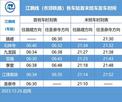 根據(jù)客流變化特征,江跳線將從2023年12月26日起優(yōu)化列車運行圖,延長運營服務(wù)時間。