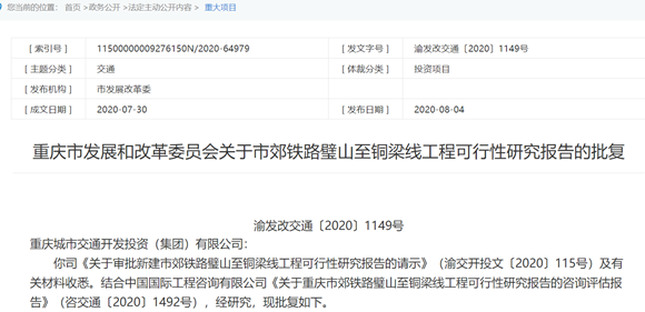 重慶市郊鐵路璧銅線獲批!總投資86.42億 設(shè)立這9個站點